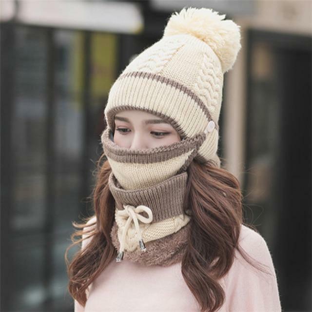 3in1 New Cold Weather Sets Womens Winter Scarf Set Hat Cap Set